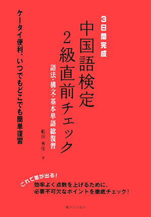 3日間完成中国語検定2級直前チェック価格: 1,680円レビュー評価: 0.0 レビュー数:0 語法・構文・基本単語総復習 著者:船田秀佳出版社:駿河台出版社サイズ:単行本ページ数:110p発行年月:2008年02月この著者の新着メールを登録する【内容情報】(「BOOK」データベースより)ケータイ便利、いつでもどこでも簡単復習。効率よく点数を上げるために、必要不可欠なポイントを徹底チェック。【目次】(「BOOK」データベースより)第1日 語法・構文総チェック/第2日 誤文訂正/第3日 覚えておきたい単語・四文字成語チェック/付録 実力テスト/解答【著者情報】(「BOOK」データベースより)船田秀佳(フナダシュウケイ)1956年岐阜県生まれ。東京外国語大学外国語学部中国語学科卒業。カリフォ |