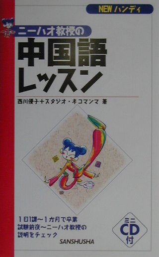 ニーハオ教授の中国語レッスン(〔2001年〕)価格: 1,470円レビュー評価: 0.0 レビュー数:0 ハンディ 著者:西川優子/スタジオ・ネコマンマ出版社:三修社サイズ:新書ページ数:159p発行年月:2001年10月付属資料:CD1この著者の新着メールを登録する【内容情報】(「BOOK」データベースより)ニーハオ教授が中国語の基礎をやさしく説明。わかりにくい文法説明を、マンガで視覚的に理解。イラストと文法説明が組み合わさった画期的な中国語入門。【目次】(「BOOK」データベースより)中国語の音(高い音が基調/息の出し方と舌の位置/二重母音と三重母音/二つの「ん」)/日本語の中の中国語/文のくみたて?肯定文と否定文/疑問文?二つの言い方/“有”と“在”?二つの「ある/いる」/疑問詞疑問文?語順 |